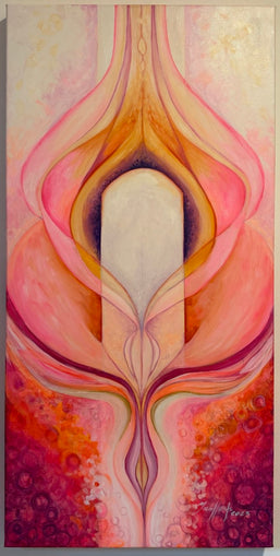 Her spiritual practice serves her as a tool to silence the mind, to create the proper conditions to perform Art, allowing a deep state of peace and artistic ecstasy to take place. She allows in this way higher aspirations and spiritual inspirations to manifest on the canvas. She brings alive her most valuable inspirations, allowing herself to become a channel of manifesting her artistic visions.